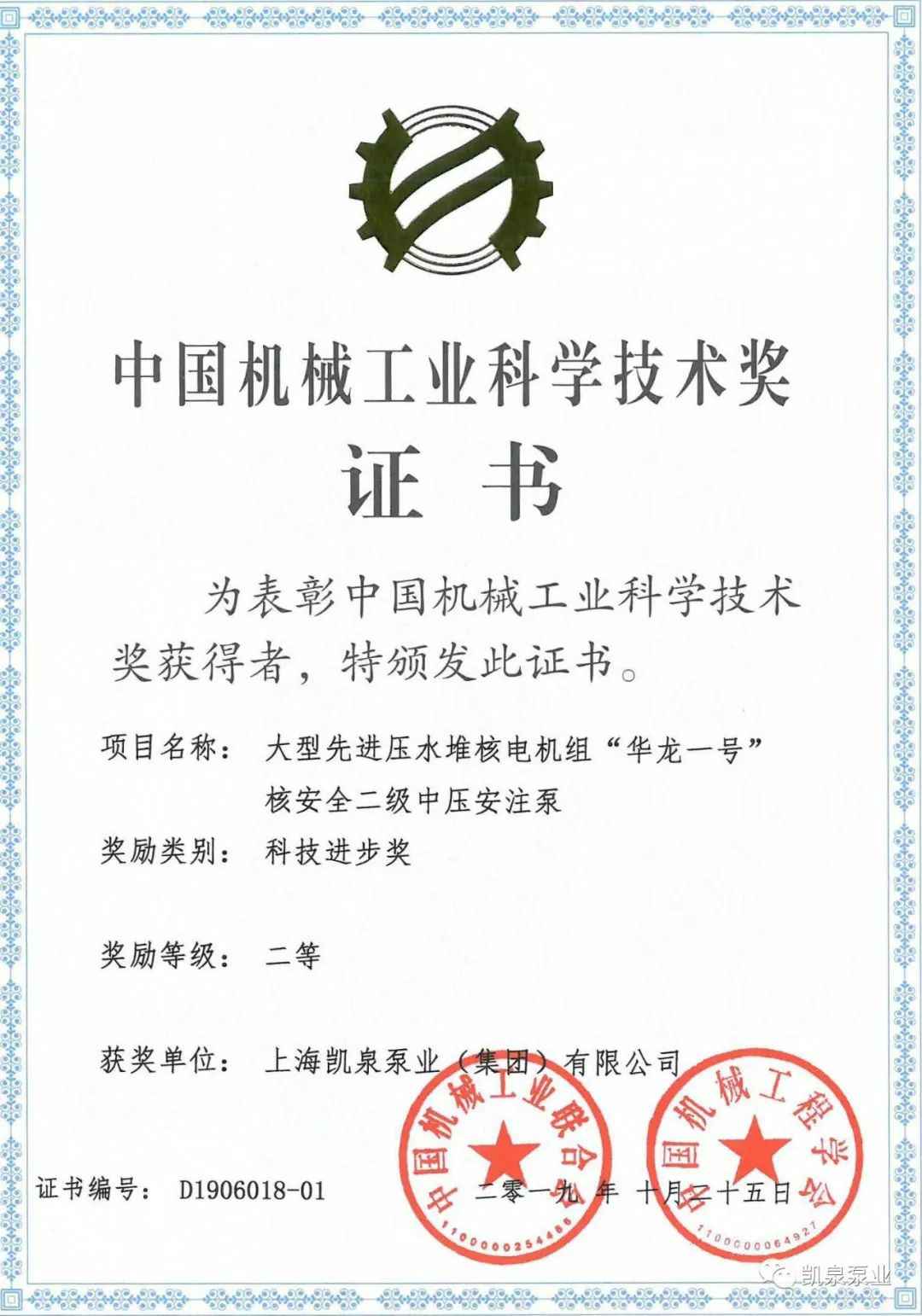 近日,半岛网页版登入界面-半岛online(中国)与中广核工程有限公司联合研制的《大型先进压水堆核电机组“华龙一号”核安全二级中压安注泵》项目荣获中国机械工业科学技术奖——科技进步奖二等奖。大型先进压水堆核电机组“华龙一号”核安全二级中压安注泵国产化研制的成功,对发展民族工业能力,对增强我国核能装备的竞争能力都起到了一定的积极作用。另外,研制过程中一些关键技术的解决,如Q-H曲线陡降的设计方法,多工况点低比速高效和汽蚀性能优异的水力模型开发研究、泵总体结构、核级泵可靠性、先进制造工艺、涵盖加气、热冲击、杂质、高温高湿特殊环境综合试验能力及测试等关键技术,对行业的技术水平、制造能力、试验能力的提升都有一定的积极推动作用。泵结构及关键技术的运行涉及各类授权专利6项。